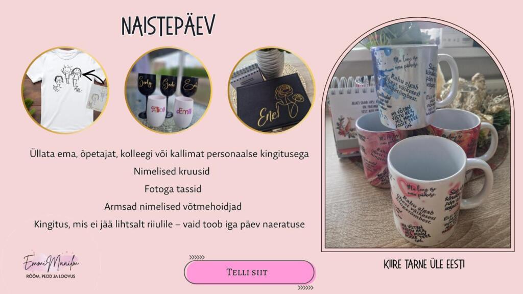 Lisa nimi, eriline sõnum või foto – ja loo midagi täiesti ainulaadset.