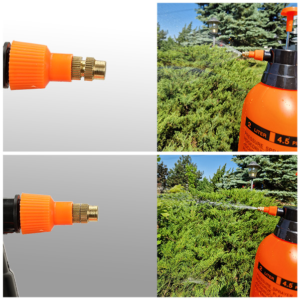 Messingist otsik võimaldab teil hõlpsasti rõhku reguleerida, keerake seda lihtsalt vasakule, et rõhku suurendada, või paremale, et seda vähendada! Selle aiaspritseeri aluseks olev käsitsi reguleeritav rõhusüsteem on intuitiivne, lihtne kasutada ja vastupidav!
