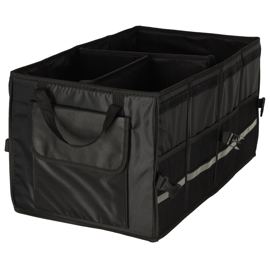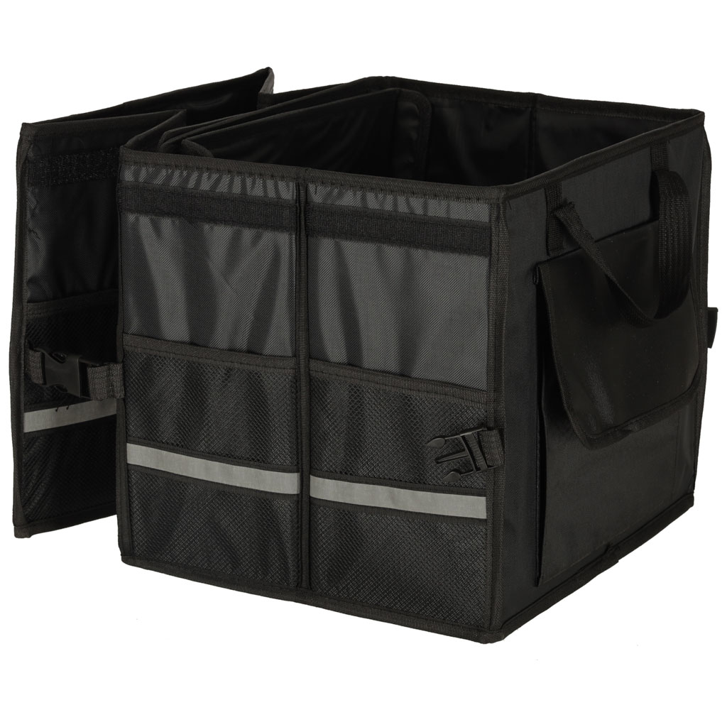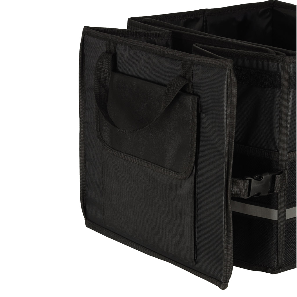Velcro-kinnitusega kaasaskantav autokott võimaldab mugavalt transportida erineva suurusega esemeid. Seda eristab küljel olev helkurlint, mis muudab pagasi lahtipakkimise pimedal ajal oluliselt lihtsamaks.