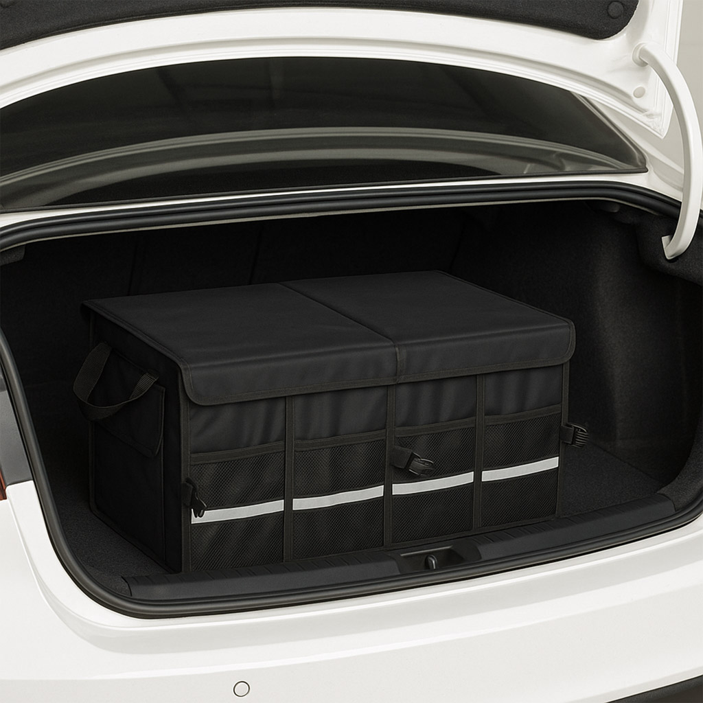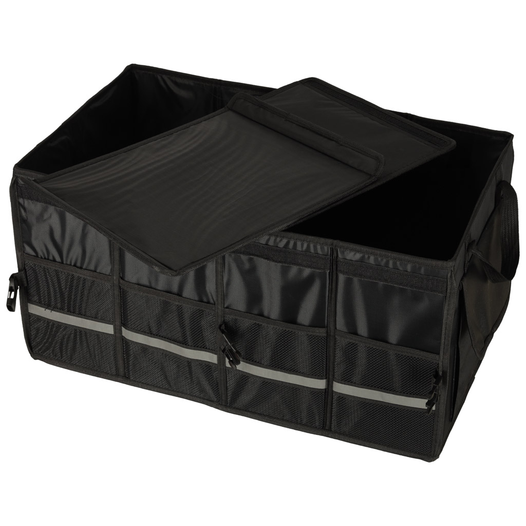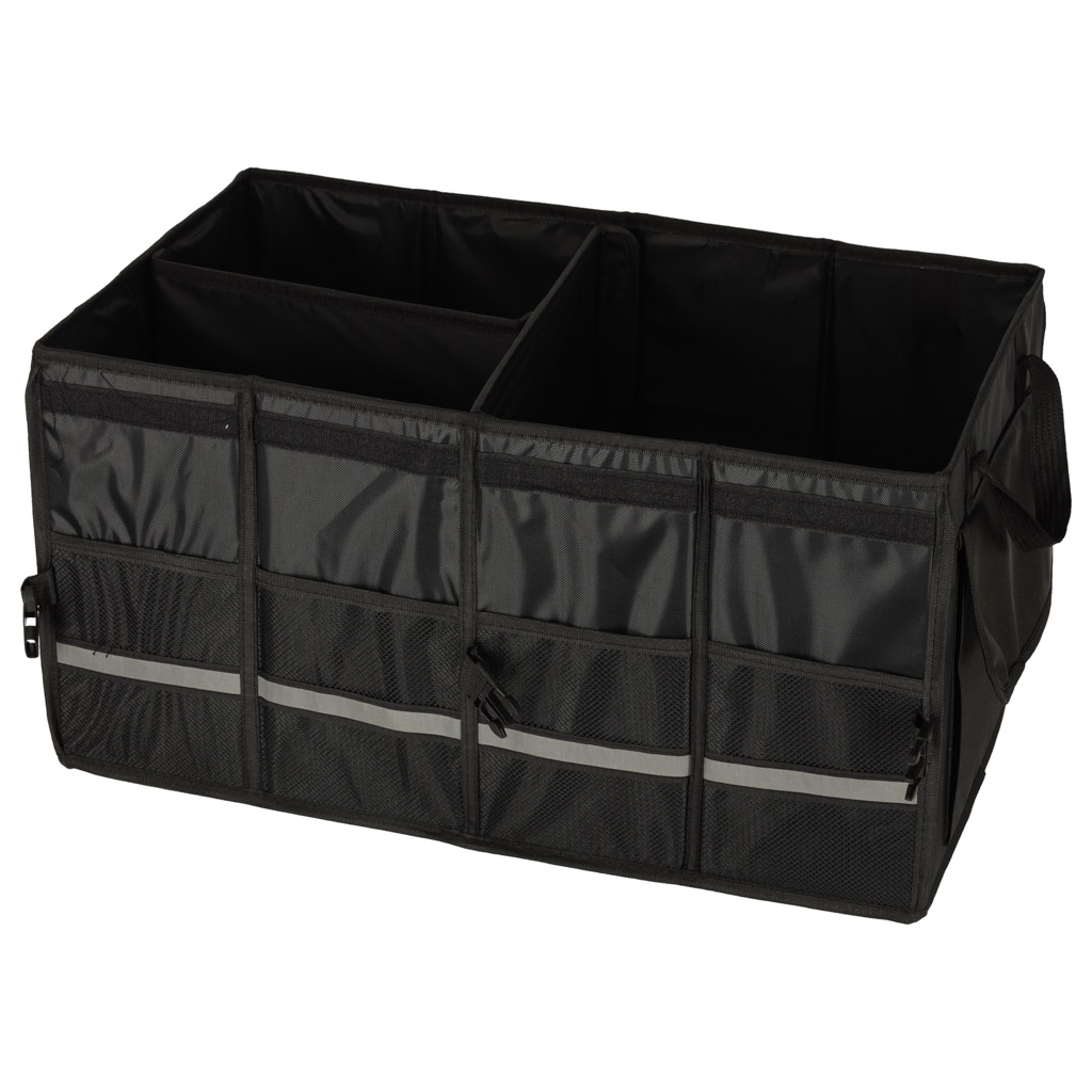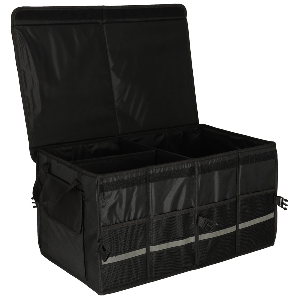 Velcro-kinnitusega kaasaskantav autokott võimaldab mugavalt transportida erineva suurusega esemeid. Seda eristab küljel olev helkurlint, mis muudab pagasi lahtipakkimise pimedal ajal oluliselt lihtsamaks.
