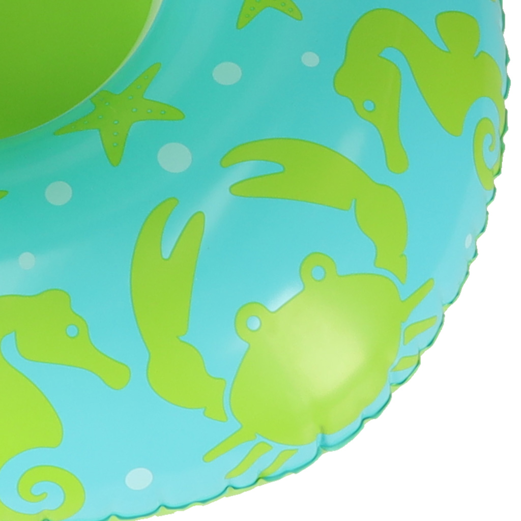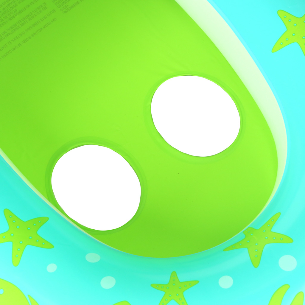 Roheline ratas koos istmega sobib ideaalselt väikelapsele, kes alles õpib ujuma. Tänujalgade aukudele istub teie laps stabiilselt ratta sees ja ei kuku sellest välja. Täispuhutav varikatus kaitseb teie lapse õrna nahka kahjulike päikesekiirte eest. Veelgi enam, basseini minekul saab varikatuse eemaldada. Ratas on valmistatud vastupidavast PVC-st, nii et see kestab rohkem kui ühe suvehooaja.