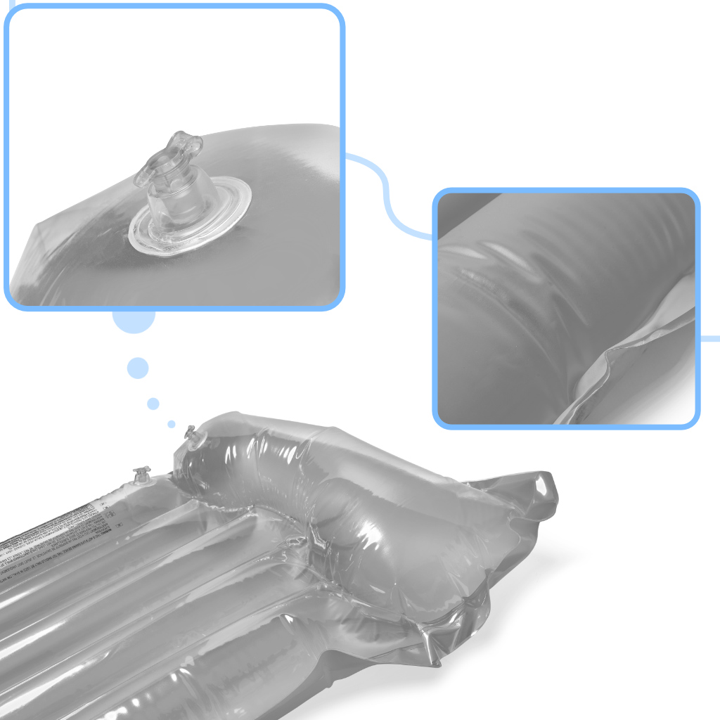 Kahekambriline konstruktsioon tagab mugavuse! Pumbate madratsi põhiosa üles, et tagada piisav ujuvus, ja reguleerite rõhku padjas vastavalt oma eelistustele!