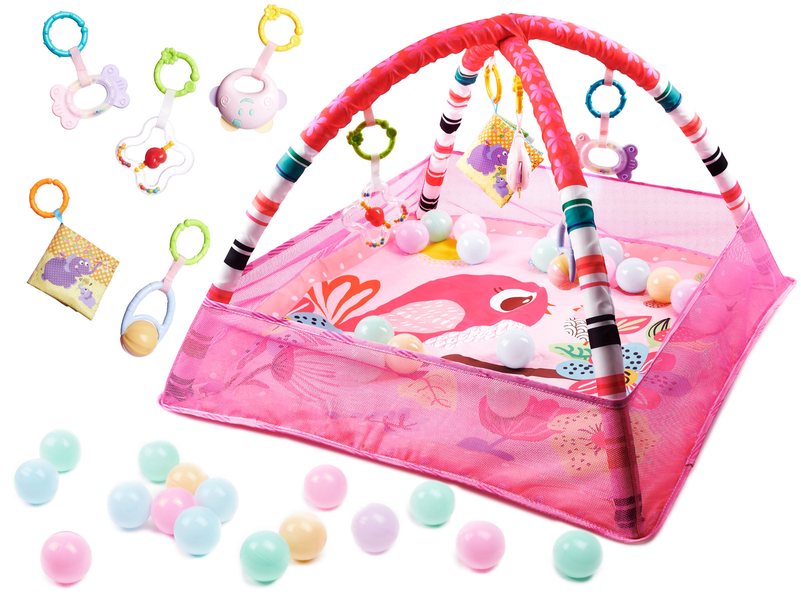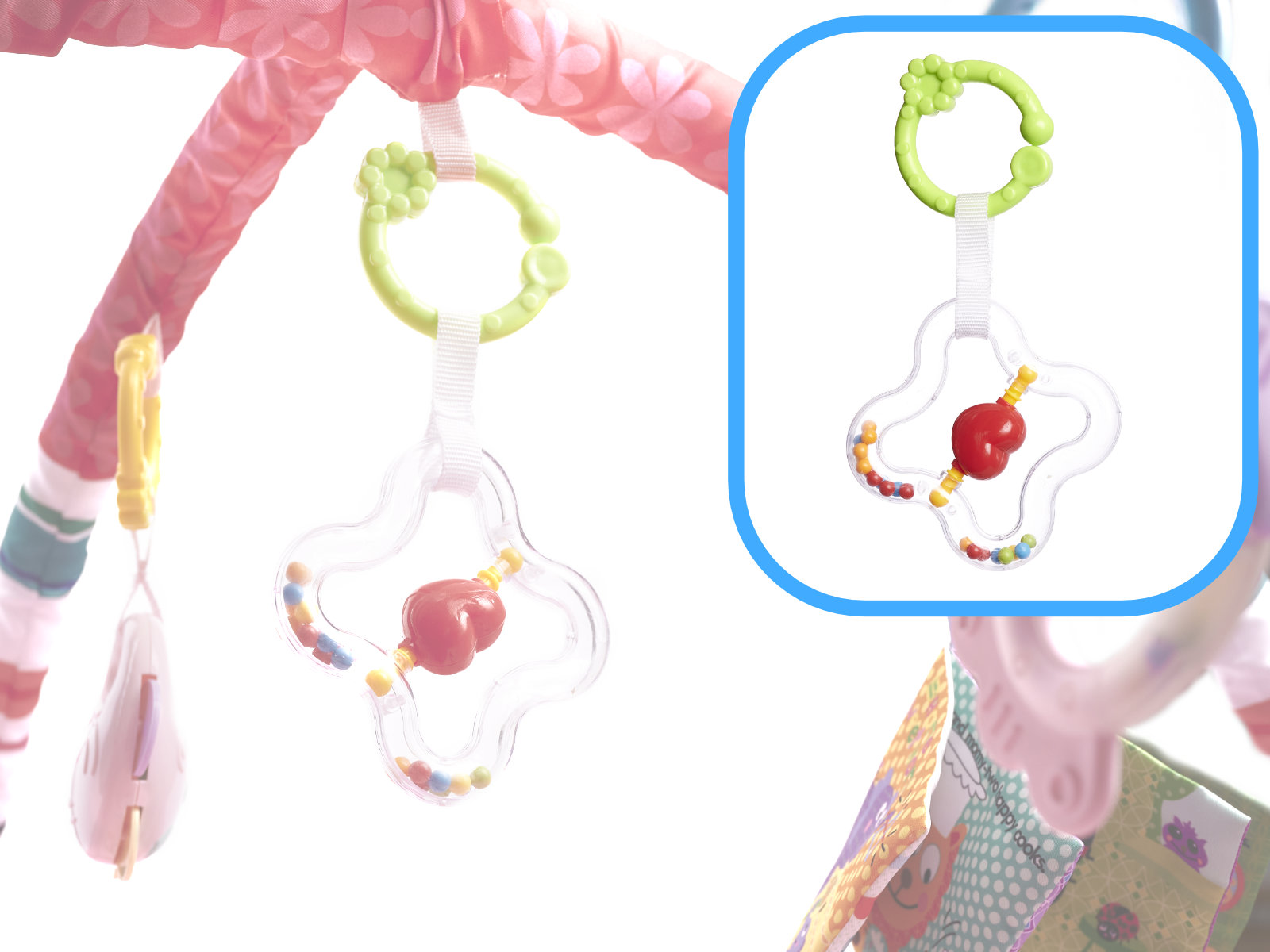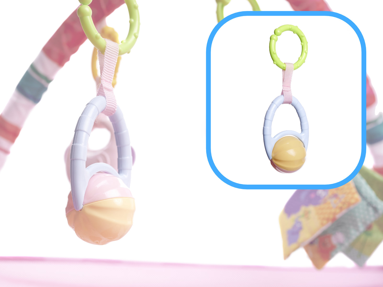 Mänguasjadega matt, mis on riputatud tõusvate rippude külge– Kaartest rippuvad värvilised mänguasjad köidavad lapse tähelepanu ja motiveerivad teda treenima ja tugevdama kaela-, käsi- ja jalalihaseid. Lisaks on see suurepärane esimeseks iseseisvaks istumiseks.