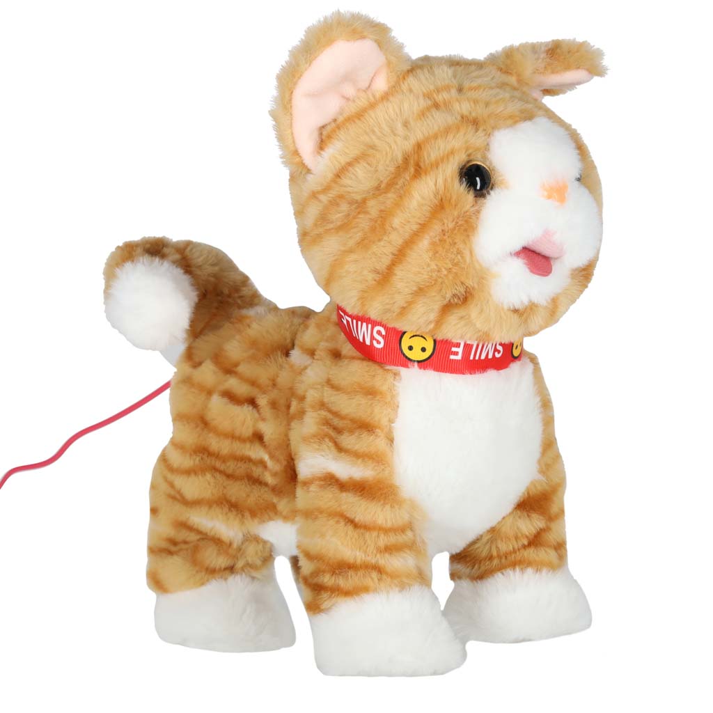 Kass kõnnib ja mängib samal ajal laule – kui vajutad rihma nuppu, kõnnib kass edasi, mängides ingliskeelseid laule