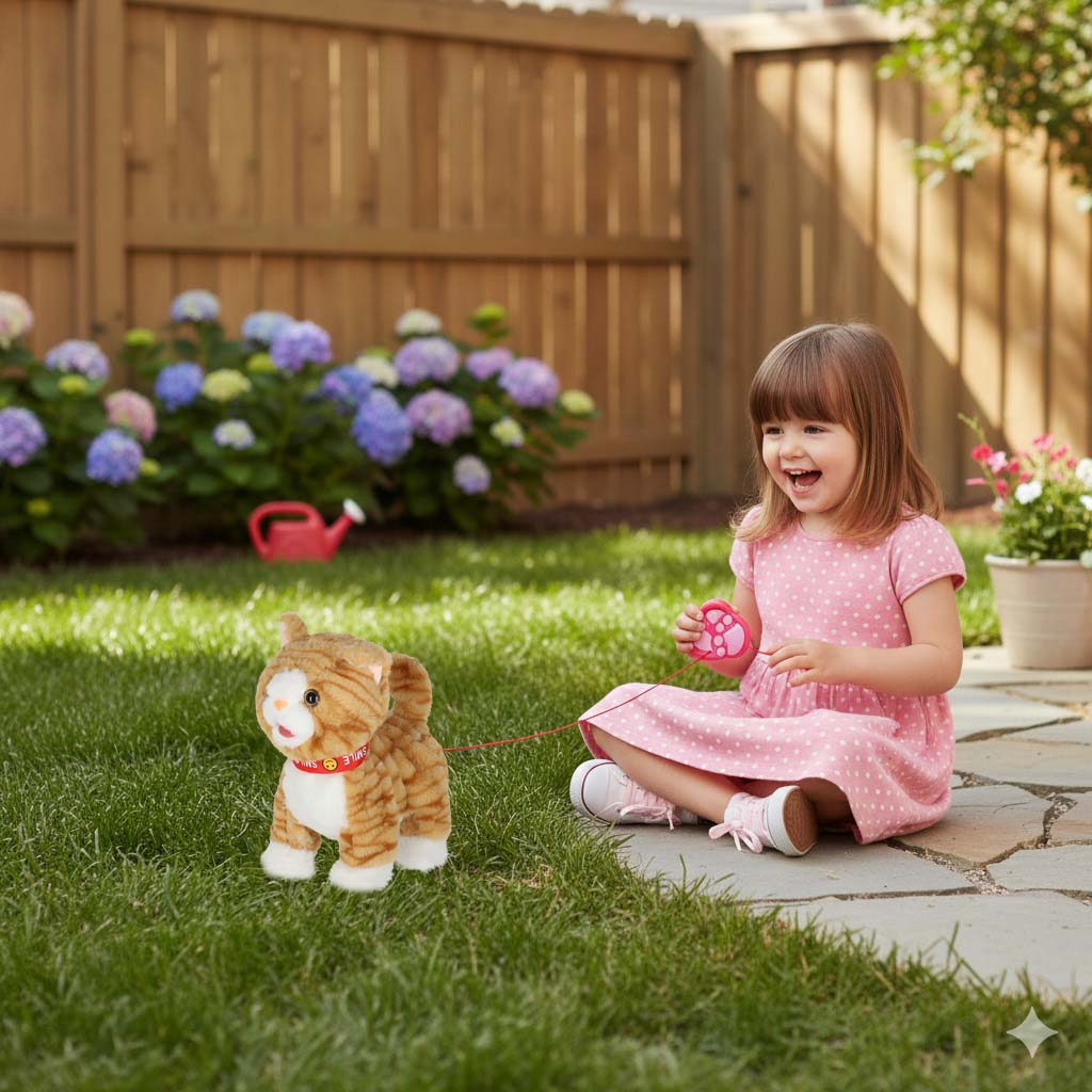 Pluusist lemmikloom väikelastele alates 3. eluaastast – kassipoeg rihmaga aitab väikestele näidata, kuidas kassipoegade eest hoolitsemine välja näeb