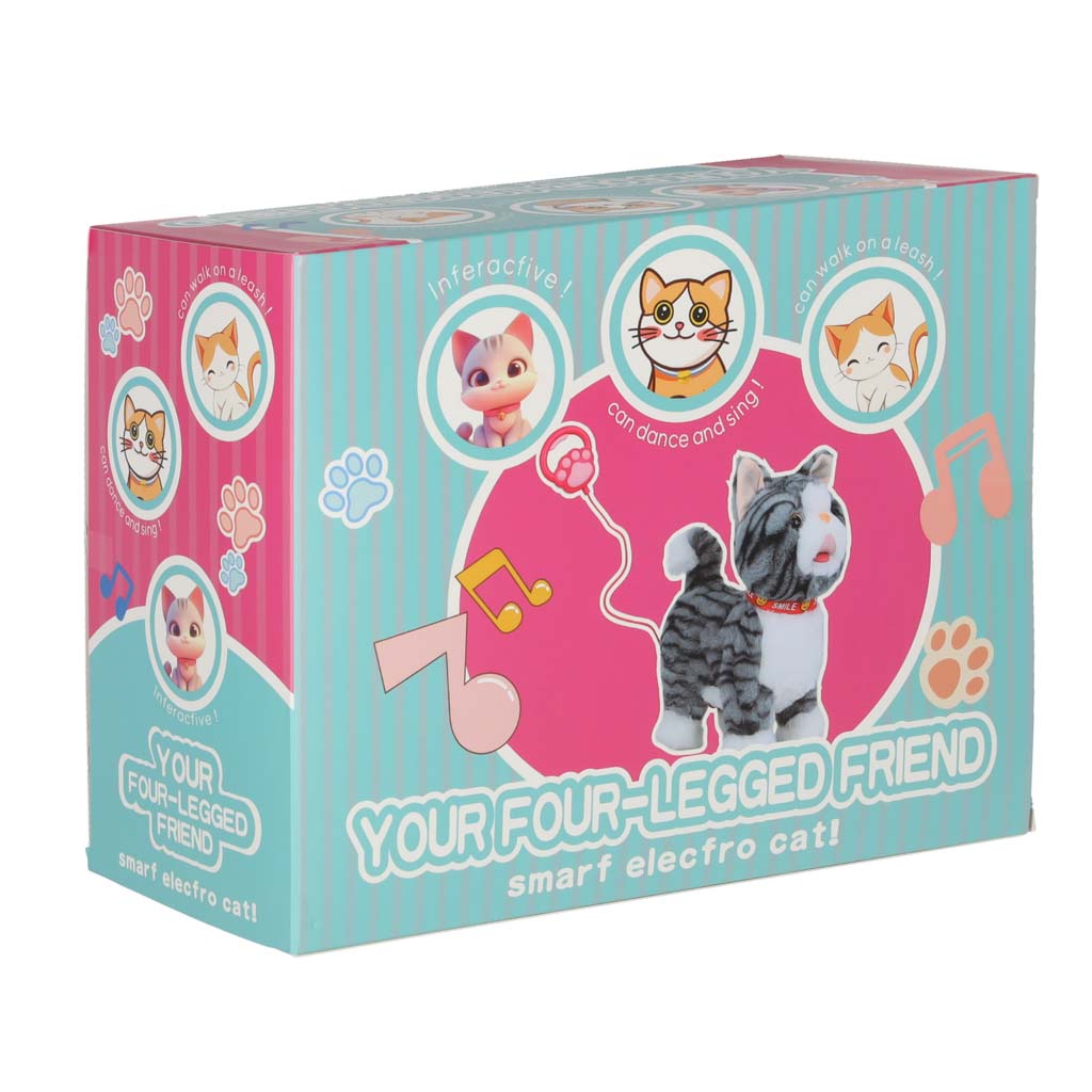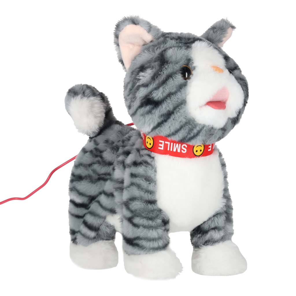 • Kassipoegkõnnib edasi, mängides laule – kui vajutad rihma nuppu, hakkab kassipoeg edasi kõndima, mängides samal ajal rõõmsameelseid meloodiaid