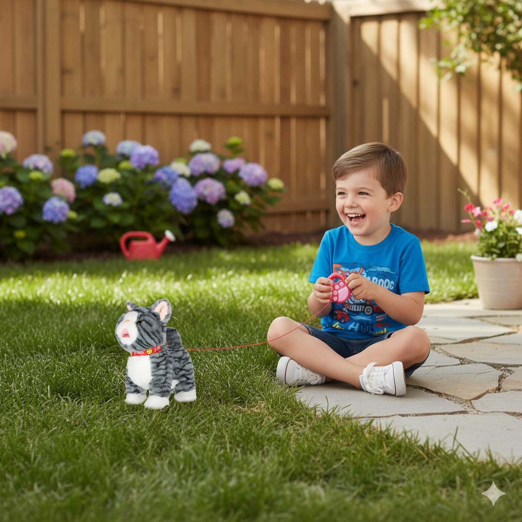 • Sõbralik mänguasi lastele alates 3. eluaastast – pluusist kassipoeg koos rihmaga näitab lapsele, kuidas lemmiklooma eest hoolitseda