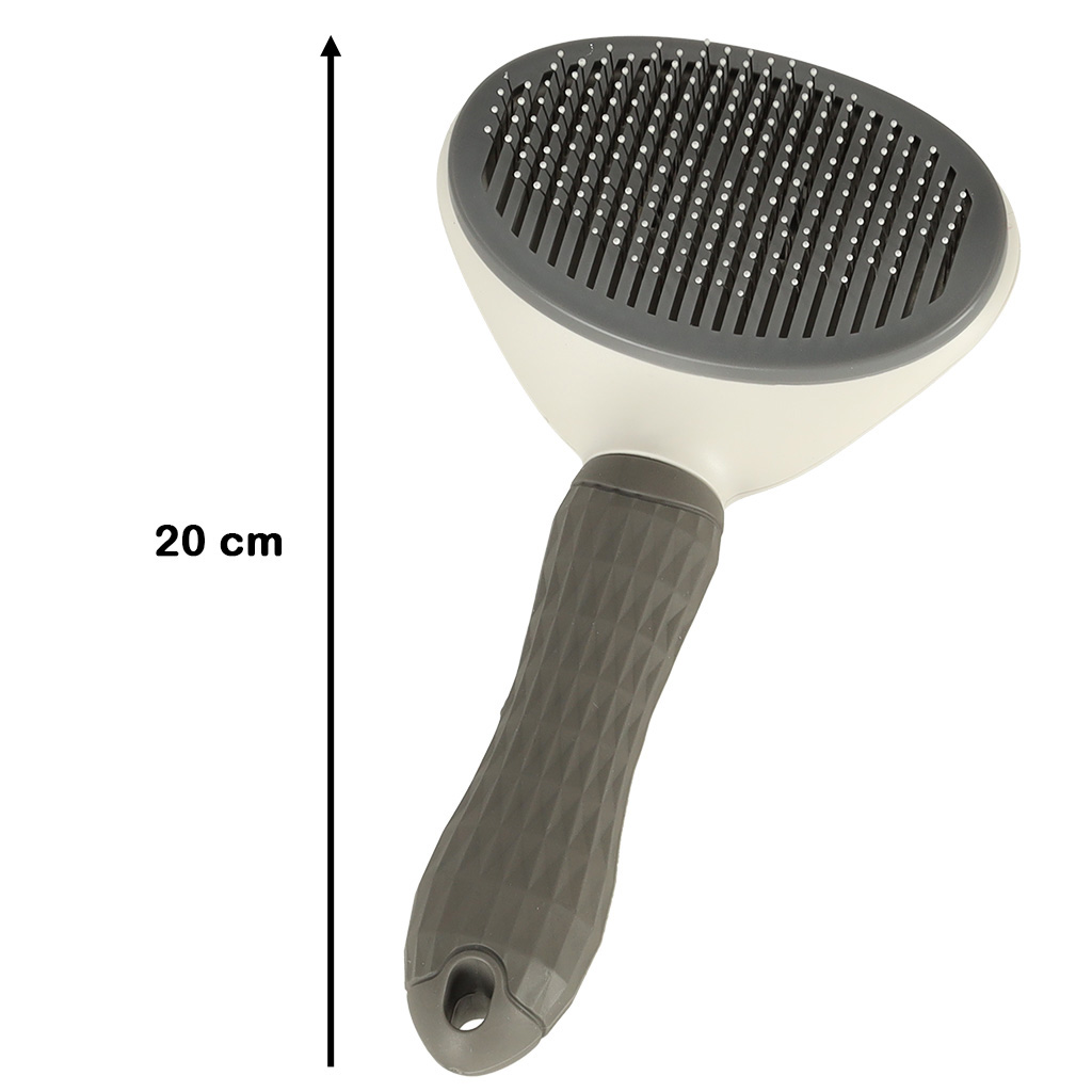 Lisaks on harjal isepuhastuv mehhanism. See tähendab, et te ei pea lemmiklooma kammimisel karvu harja hammaste vahelt välja kaevama. Vajutage lihtsalt nuppu ja kõik välja kammitud karvad tulevad hõlpsasti harjast ära.