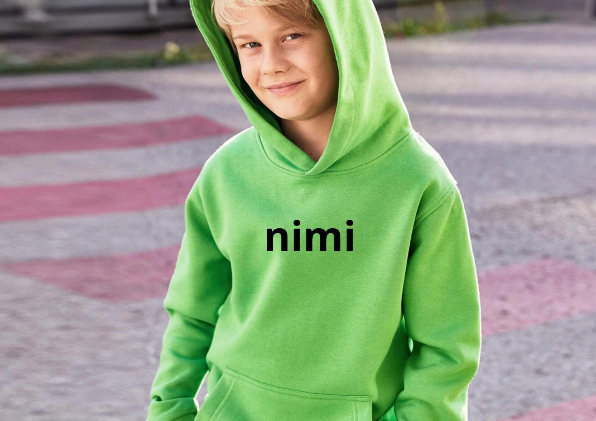 Kvaliteetne ja mugav kapuutsiga laste pusa, millele saame lisada lapse nime, rühma või klassi nime, kooli logo või muu soovitud kujunduse. Sobib ideaalselt tellimiseks tervele rühmale või klassile – lasteaeda, kooli, huviringi, trenni või üritusele.