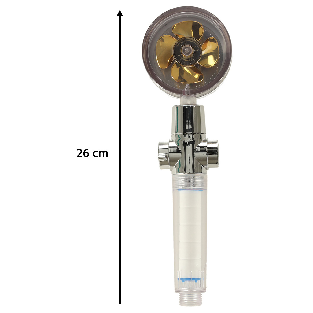 Dušikomplektihõbedane värvus koos kuldse turbiiniga sobib suurepäraselt teie vannitoa värvilahendusega ja harmoneerub teiste furnituuridega.