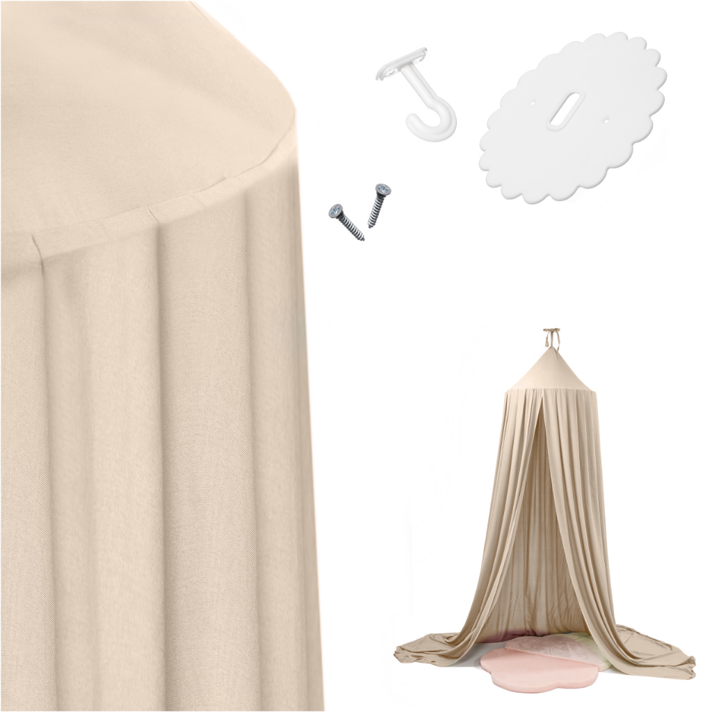 Baldachin sobib suurepäraselt ka telgiks. Sellest saab hubane peidupaik, kus leiavad peavarju pluusist sõbrad, lemmikautod, nukud või figuurid. See on ka ideaalne koht puhkamiseks, rahunemiseks ja ühise raamatu lugemiseks.