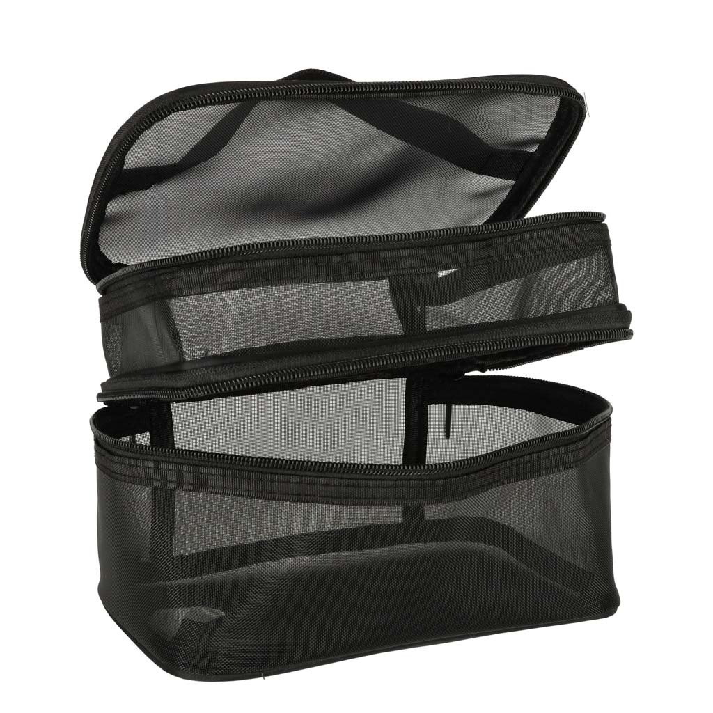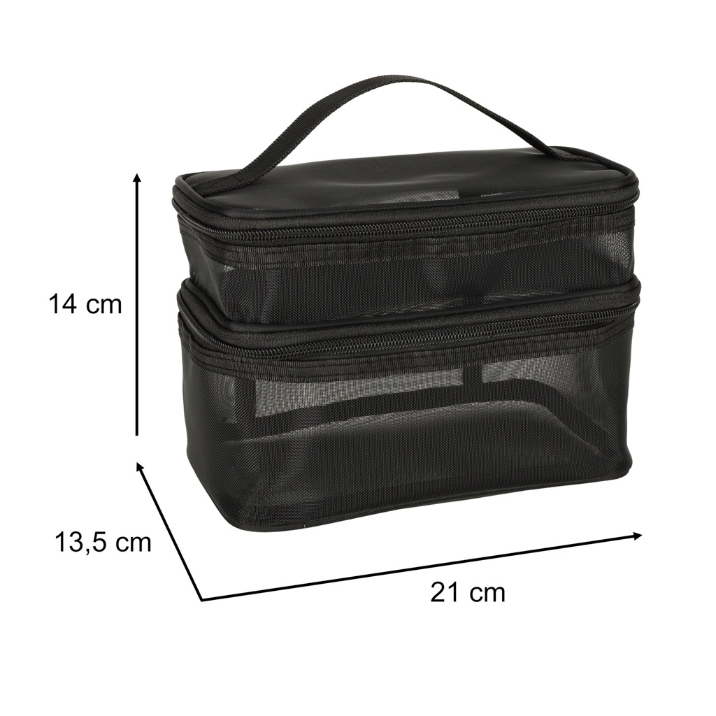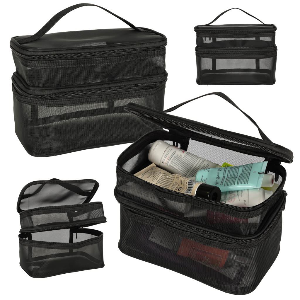 Praktiline reisikosmeetikakott – on hädavajalik igale reisile. Tänu kahetasandilisele disainile võimaldab see organiseerida oma kosmeetikatarbeid. See kinnitatakse kahepoolse tõmblukuga. See on valmistatud võrkmaterjalist, mis lihtsustab peidetud toodete leidmist. Sellel on mugavaks kandmiseks praktiline käepide.