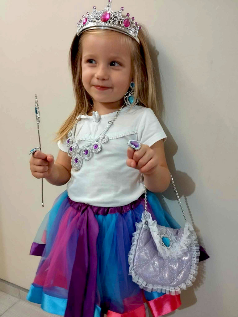 KOSTÜÜM KUNINGANNA KOSTÜÜM PRINTSESSI KROON KÄEKOTT 9 ESEMED Võimaldab sul tunda end tõelise staarina! Tänu paljudele lisaelementidele tõmbab see laste ja täiskasvanute tähelepanu! Sobib suurepäraselt nii kodus kui ka kostüümiballil mängimiseks! Seelik Kroon Käekott Sceptre Kaelakee Paar kõrvarõngaid Sõrmus x2 Materjal: polüester, puuvill, plastik Vanus: 3+ Suurus: Seeliku laius: 20-50 cm Seeliku pikkus: 25 cm Keepri pikkus: 24 cm Pakend: 19,5 cm x 29 cm x 6 cm Praktiliselt iga tüdruk tahab saada printsessiks! See kostüüm paneb sind end sellisena tundma! Komplekti kuuluvad seelik, kroon, käekott, skepter, kaelakee, kõrvarõngad ja sõrmused – kõik, mida kuninganna vajab! Õige riietus võimaldab sul end tegelaskujusse sisse elada, olgu see siis kodupidu või fancy dress pidu! Iga hetk kostüümis saab olema erakordne! Toode on pakendatud aknaga pappkarpi.Printsessi kostüüm: