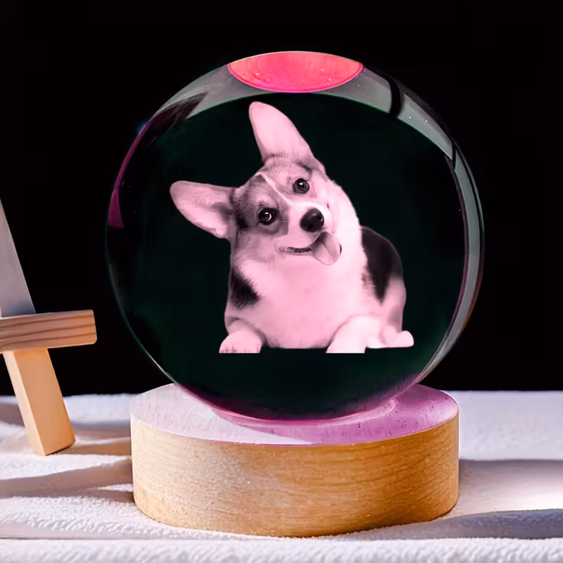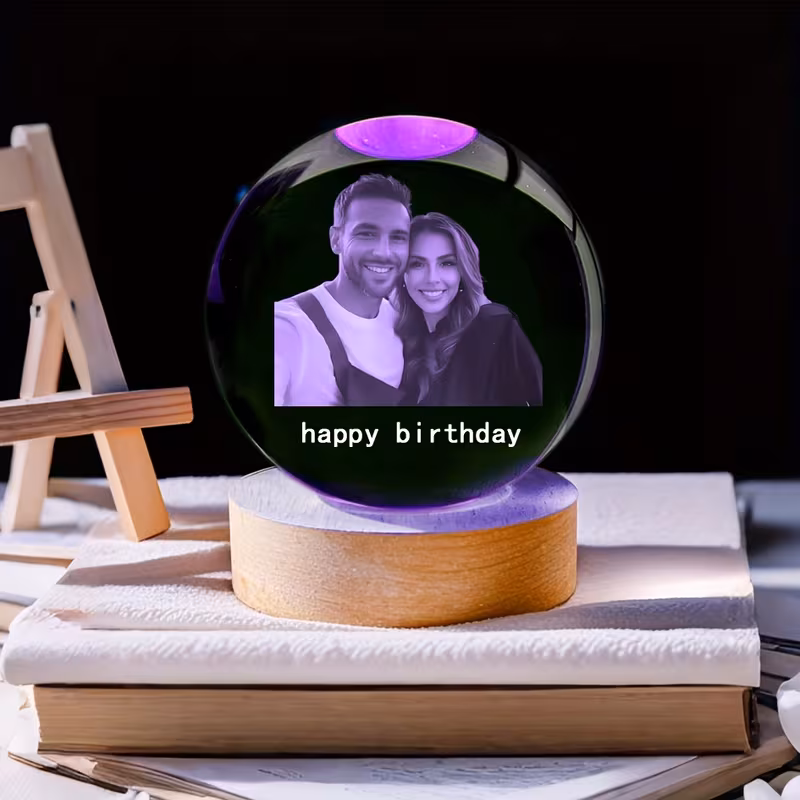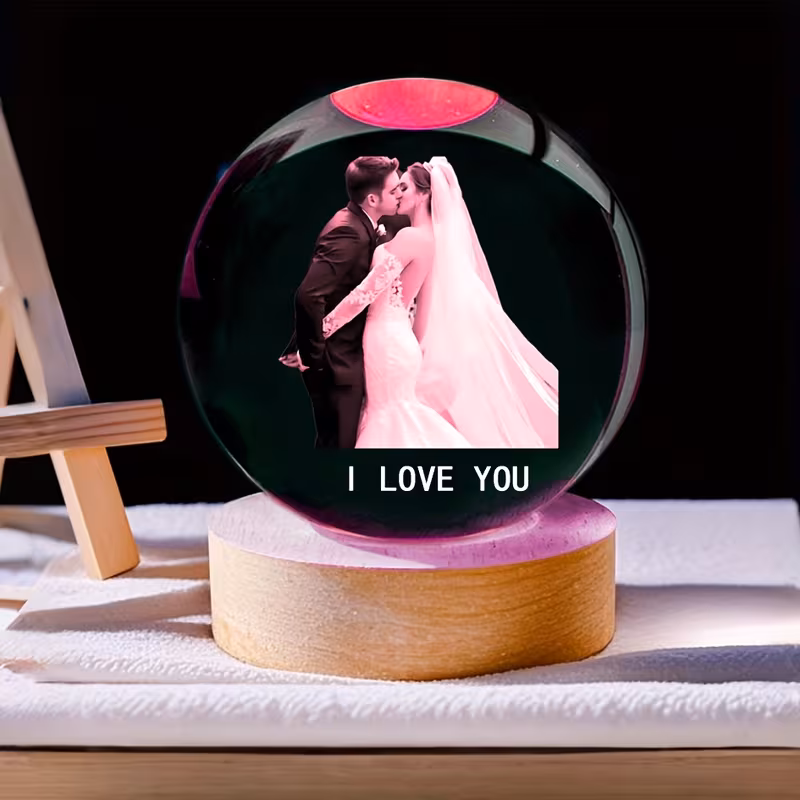 Elegantne ja isikupärane kristallpall sinu valitud fotoga, mis loob sooja ja erilise meeleolu igas ruumis. Kristallpall on asetatud värvilisele puidust alusele ning töötab USB-toitega LED-valgustusega.