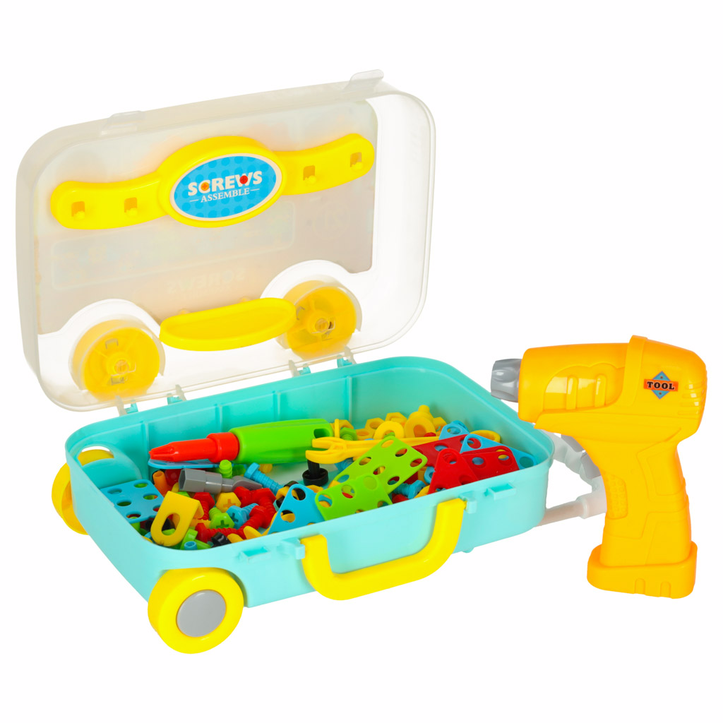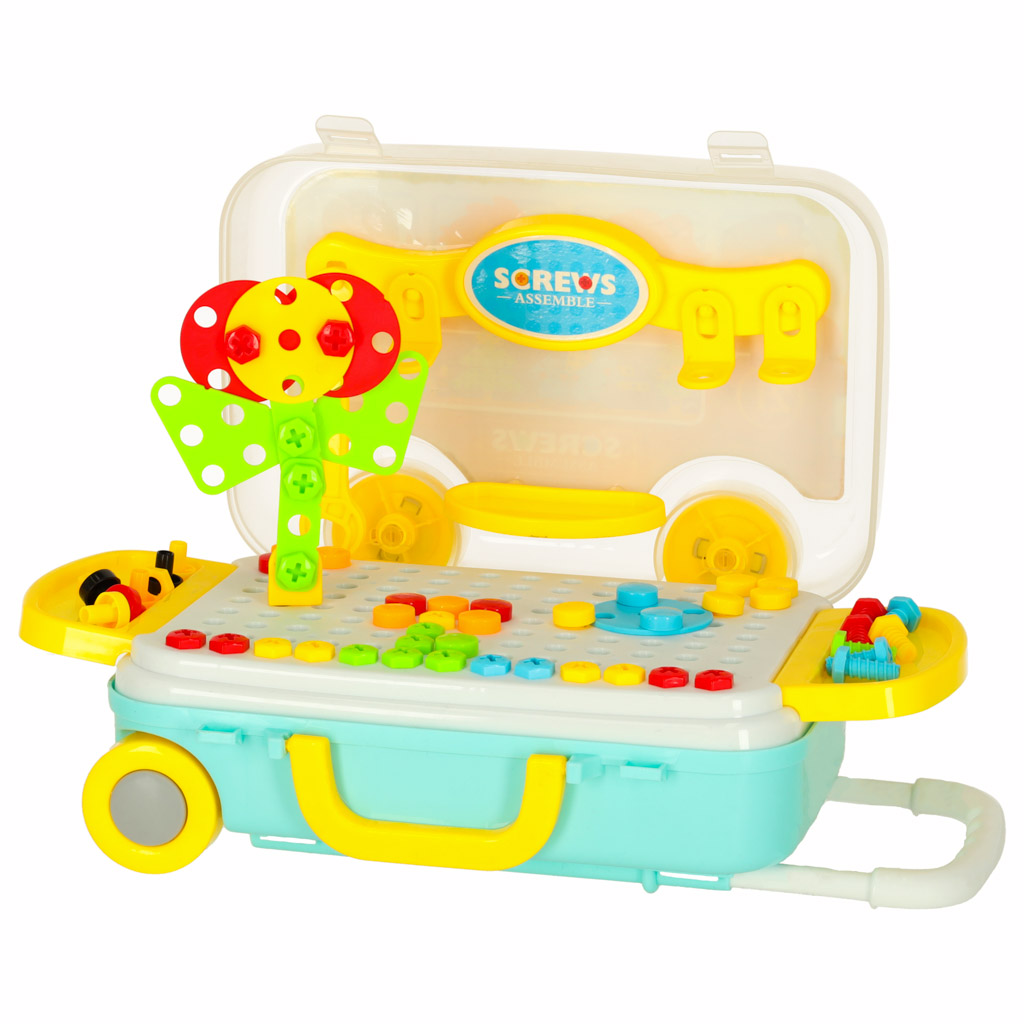Kogu komplekt on pakitud praktilisse ratastega kohvrisse, mis teeb klotside hoidmise ja transportimise lihtsaks.