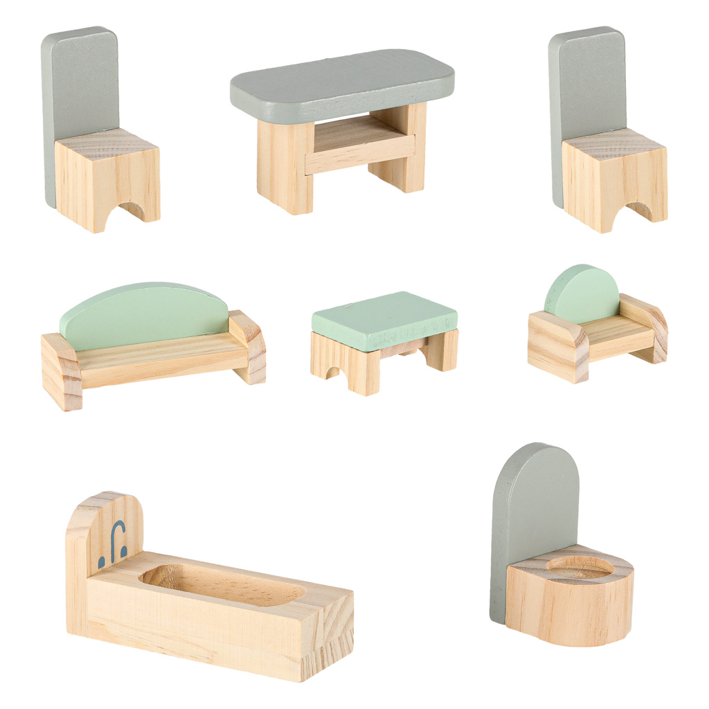 Mööbel – vann, WC, lamp, diivan, tugitool, laud, 2x toolid, voodi ja avatav kapp koos riiulitega.