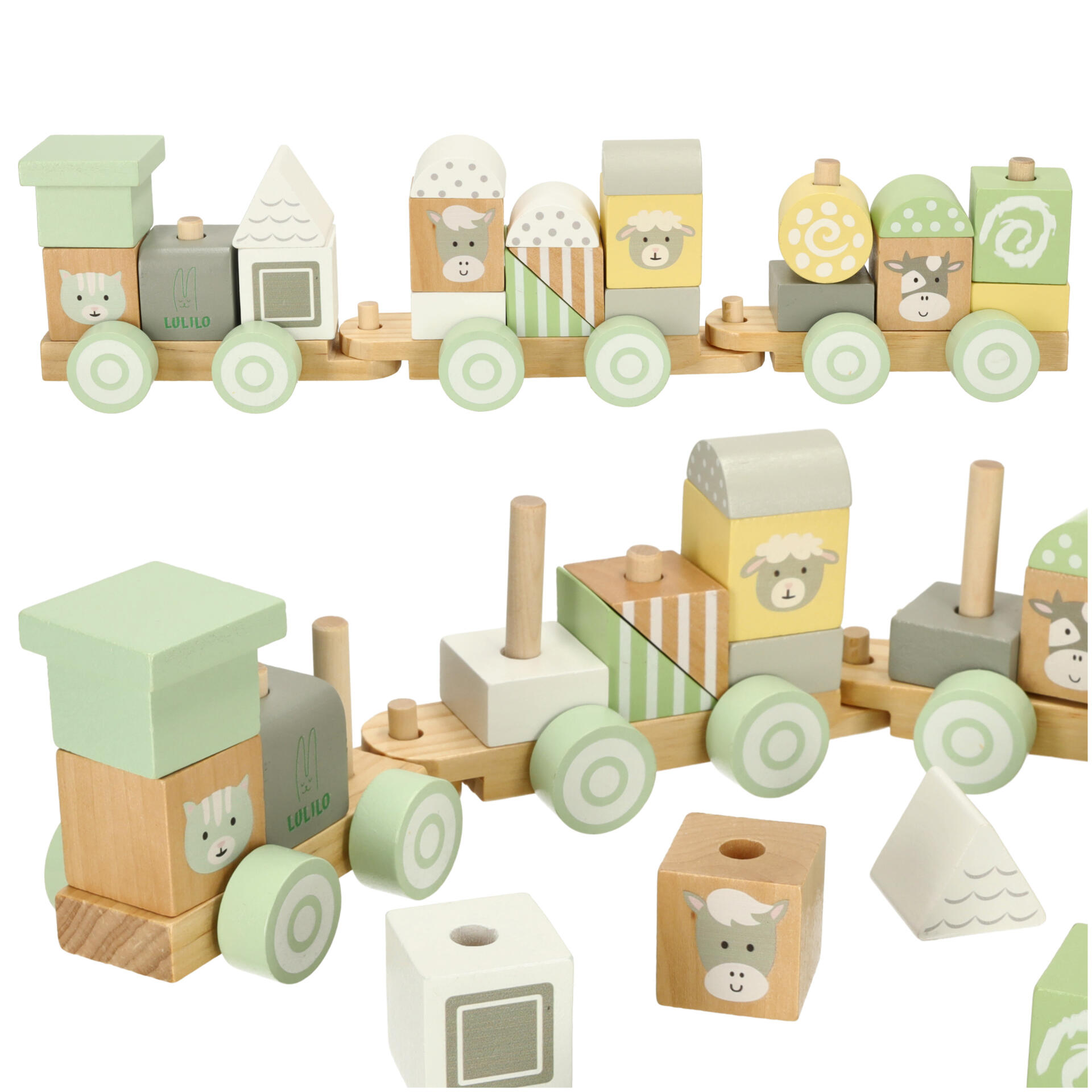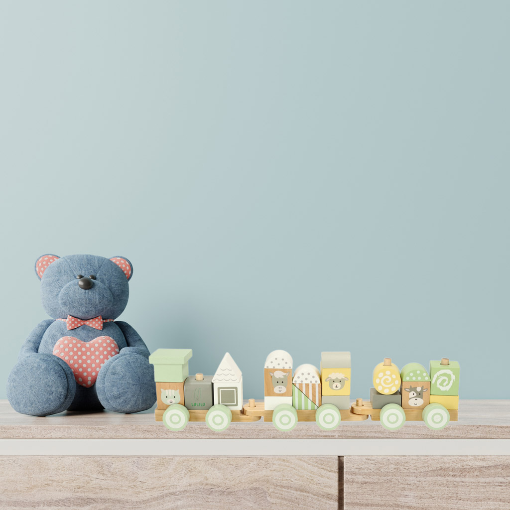 Iga puuklots on hoolikalt lihvitud ja värvitud mittetoksiliste värvidega pehmete pastelsete värvidega. Värviliste kujunduste vahele on peidetud armsad loomad, mis muudavad iga rongireisi unustamatuks seikluseks. Tänu kõrgekvaliteedilisele töötlemisele jääb see mänguasi teie lapsele paljudeks aastateks.