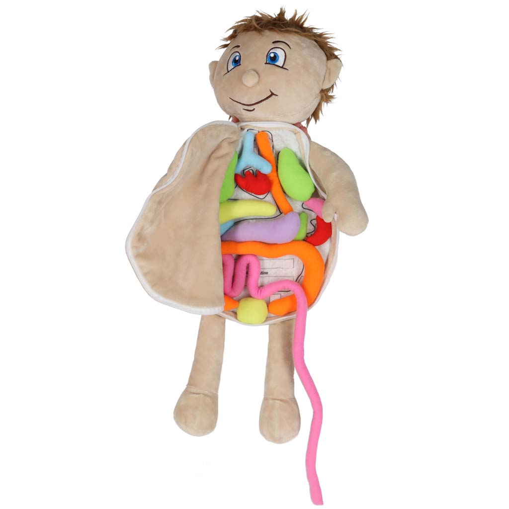 Õppeotstarbeline nukk, millel on eemaldatav kõht, on ainulaadne mänguasi, mis aitab lastel sõbralikult õppida inimkeha ehitust. Nuku kõhtu saab tänu turvalisele tõmblukule hõlpsasti lahti tõmmata. Sees on velcroga kinnitatud pehmed, värvilised “sisemused”, mida laps saab välja võtta ja ümber paigutada. Iga osa on valmistatud meeldiva puudutusega polüestrist, mis on väikestele ohutu. Nukk on riietatud värvilisse esikusse, mille saab hõlpsasti eemaldada. Esinõu on seljast paelaga kinni seotud, mistõttu on seda mugav selga panna ja ära võtta. mänguasi arendab uudishimu, käelisi oskusi ja õpetab läbi mängu. Sobib ideaalselt lasteaedadesse, teraapiatubadesse ja koju. Sobib lastele vanuses 3+.
