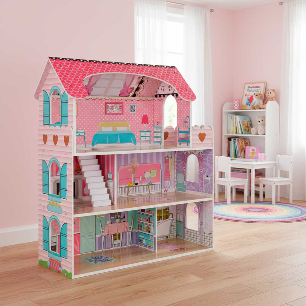 • ESTEETILISELT MEELDIV JA KINDLALT EHITATUD. detailid miniatuurse mööbli ja värvilise graafika näol rõõmustavad ja teevad nukumaja ainulaadseks.