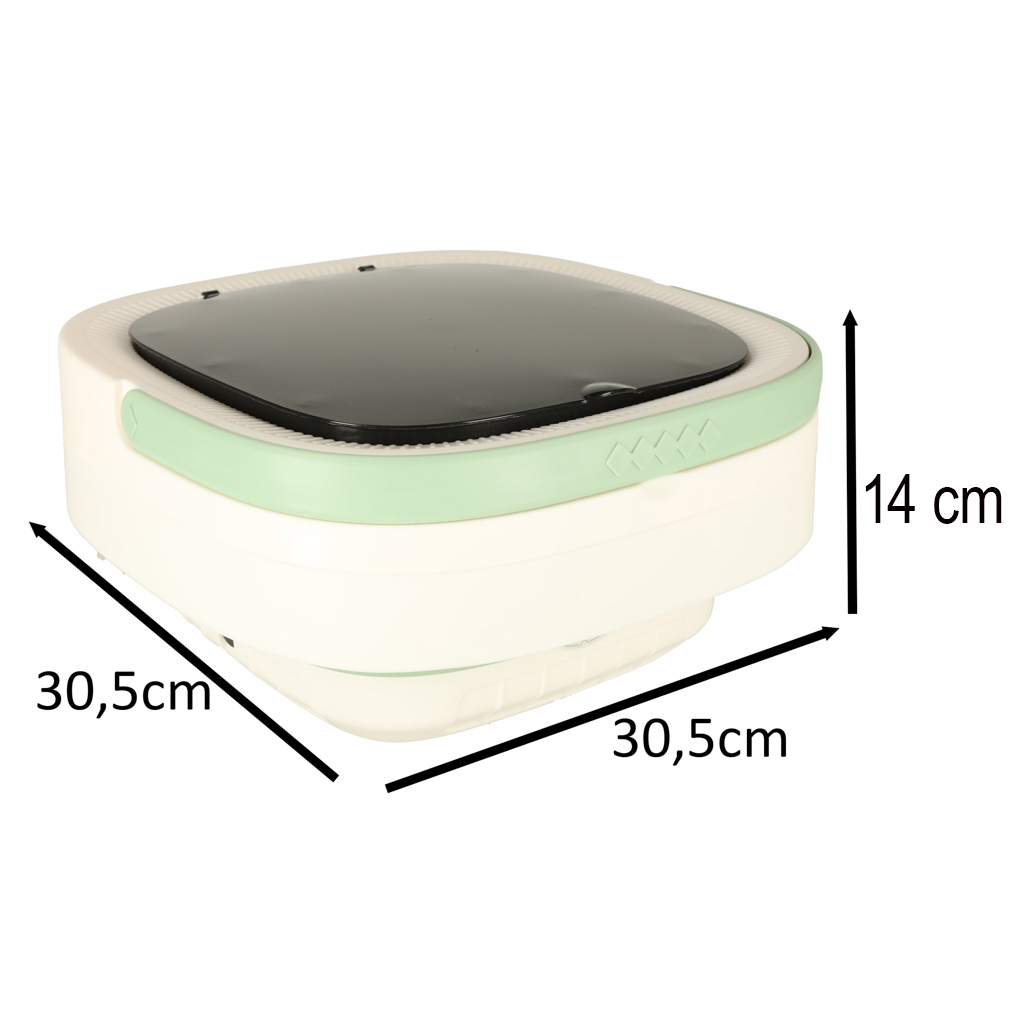 Kokkuvolditud pesumasina mõõtmed: 30,5 cm x 30,5 cm x 14 cm