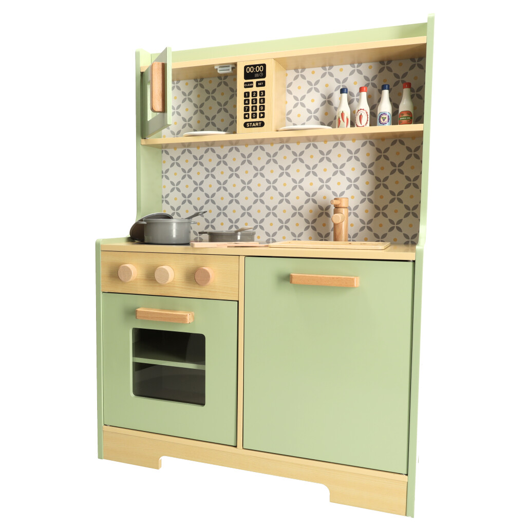 Puidust lasteköök piparmündivärvides on väikese lapse enda koht, kus ta saab avastada toiduvalmistamise kunsti ja õppida uusi oskusi!