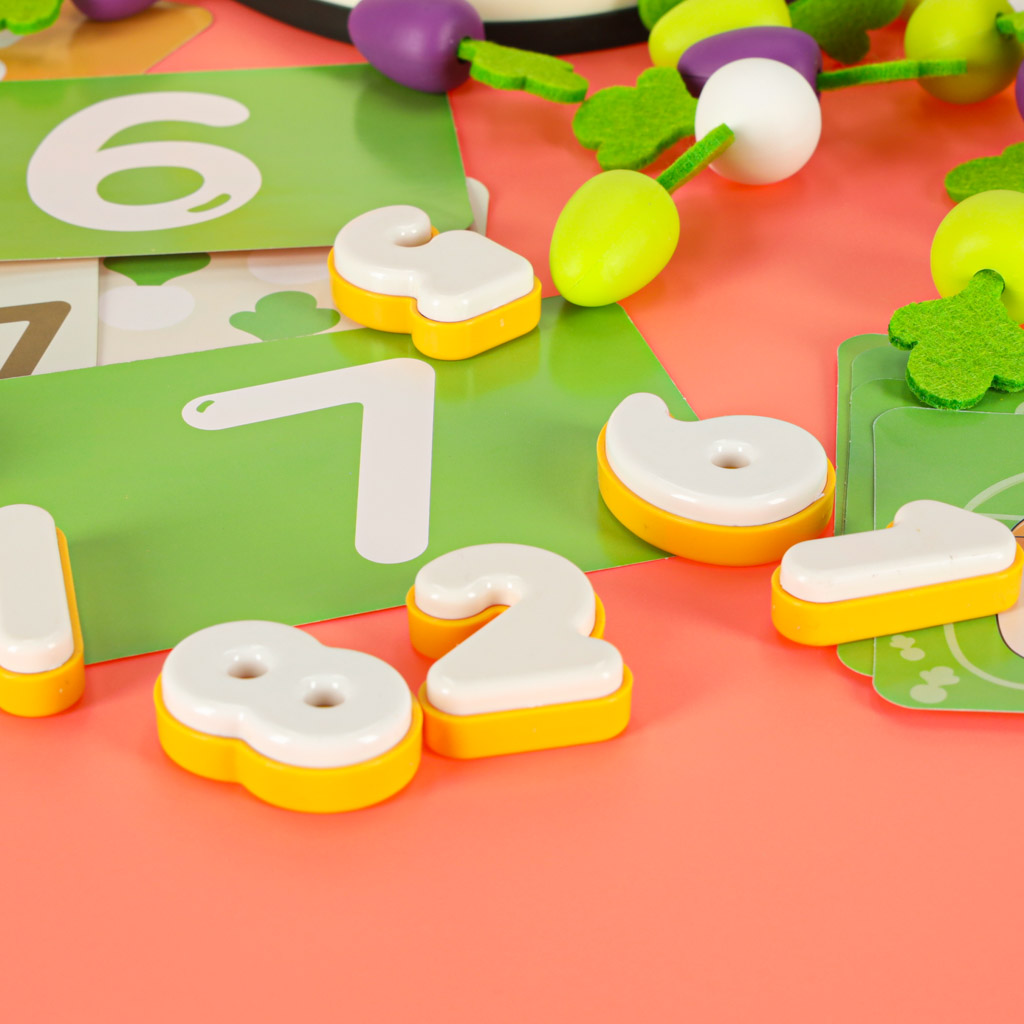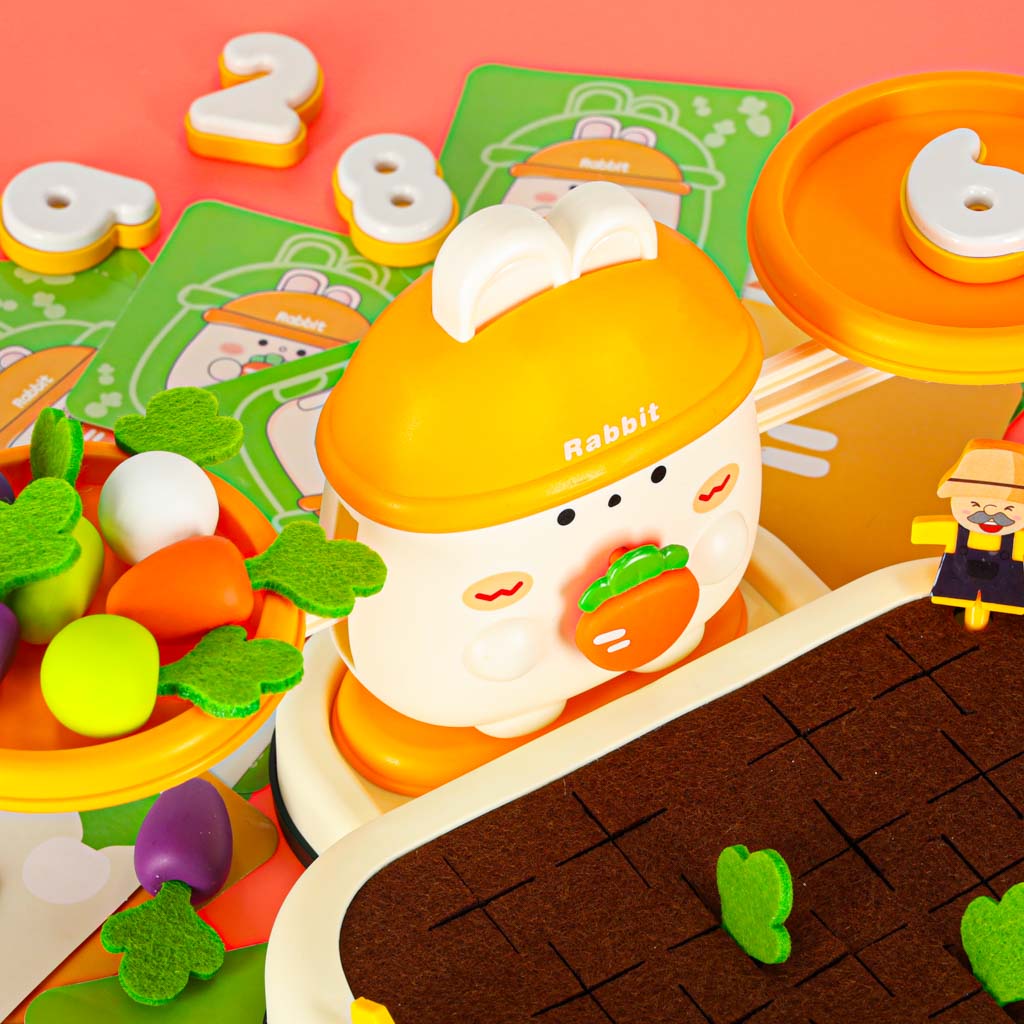 Spetsiaalselt kujundatud aukudega laud võimaldab lapsel harjutada täpsust – porgandite sisestamine ja eemaldamine arendab käelist osavust, samal ajal kui mäng “kes koristab saagi kiiremini” toob kaasa tervisliku konkurentsi.