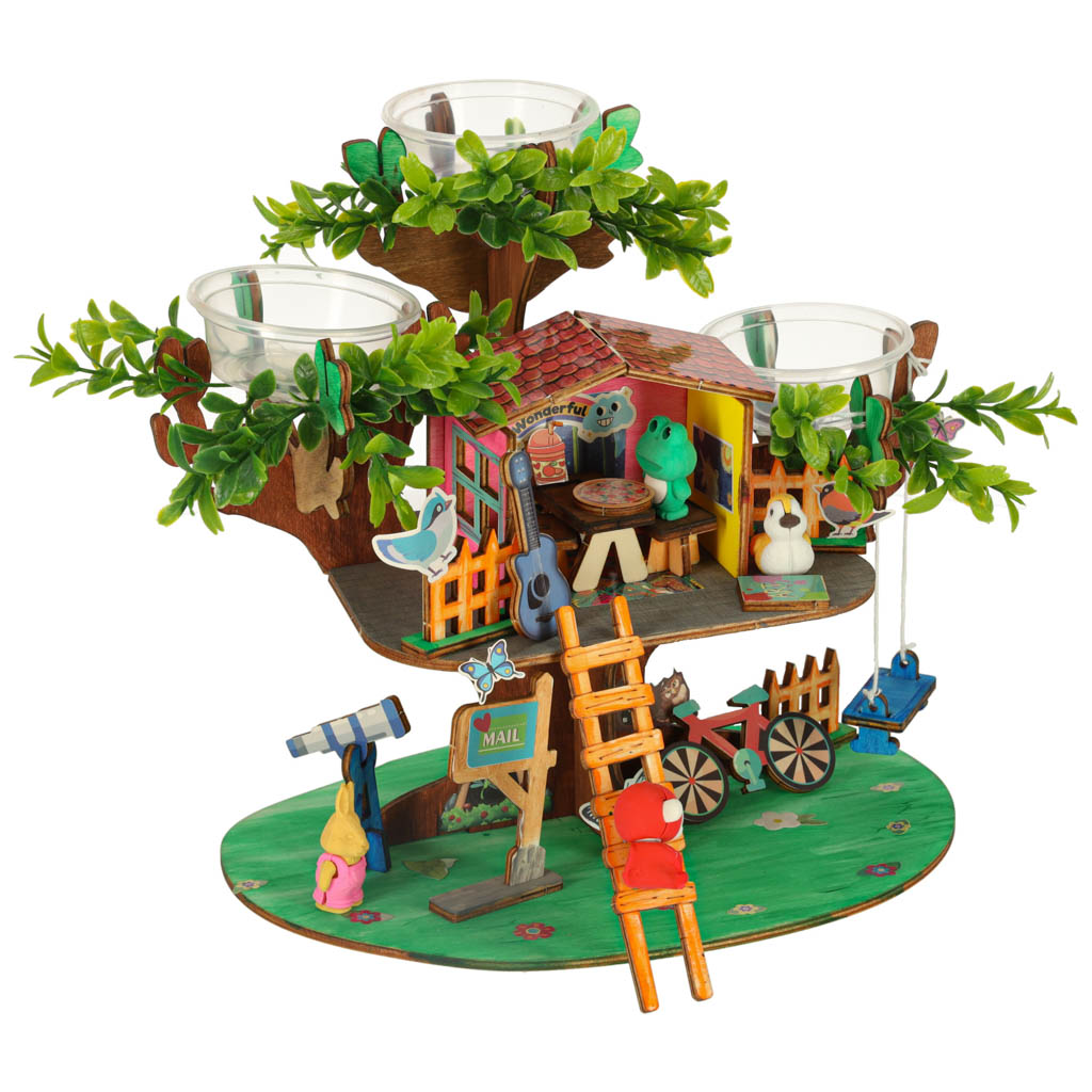 Komplektis on puidust tükid, mis tuleb omavahel ühendada, et moodustada stabiilne maja. Kaasas olevad värvilised värvid võimaldavad puitkonstruktsiooni täielikult isikupärastada. Neli värvilist figuuri lisavad kogu seadeldisele võlu ja inspireerivad looma unikaalseid, loomingulisi lugusid, milles puumaja saab unikaalseid elanikke.