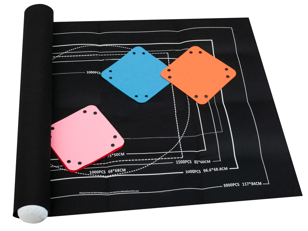 Matt on valmistatud täielikult polüestrist, mille tekstuur meenutab vildi. Sellel on valge ääristus, mis näitab, kui suure pindala paigutatud muster hõivab.