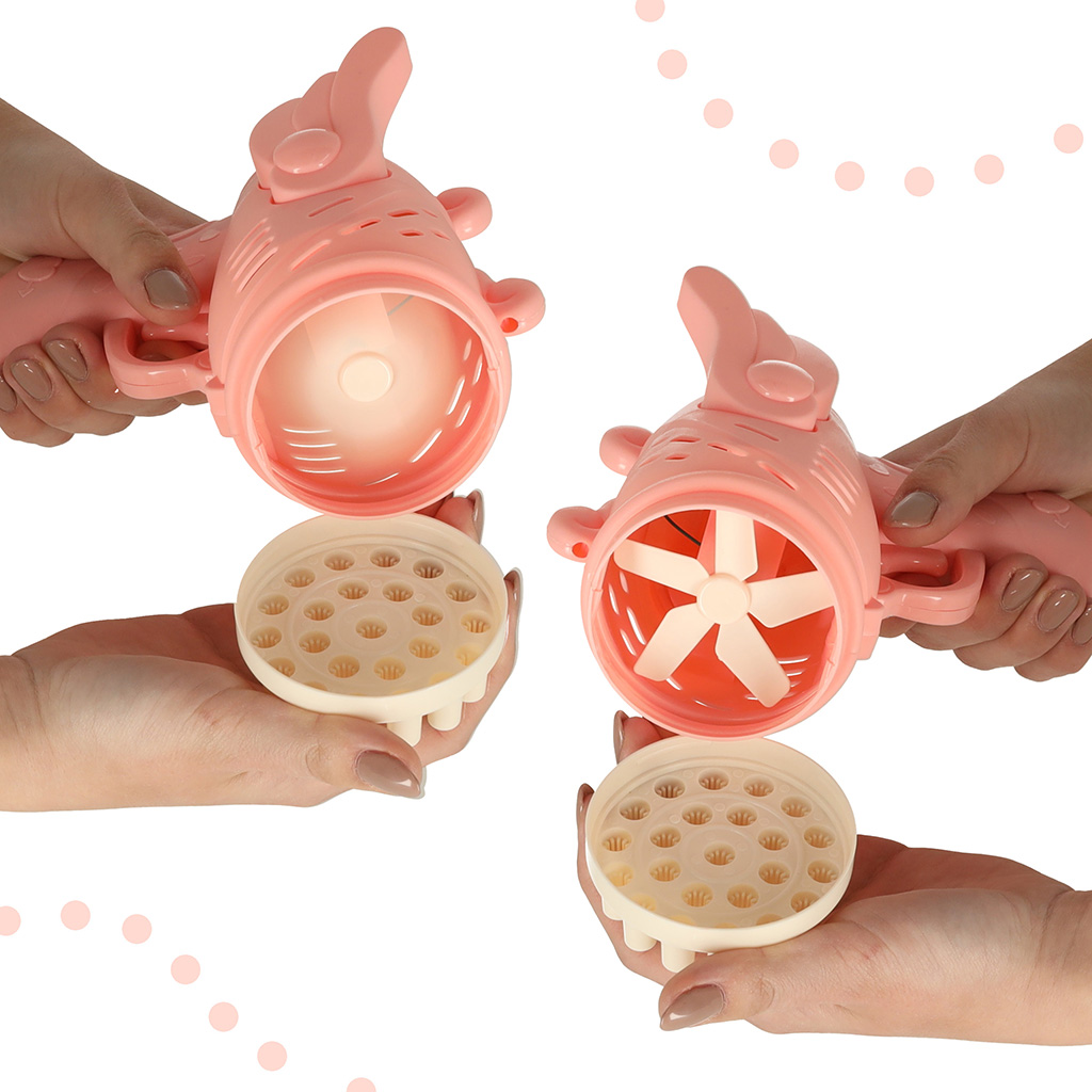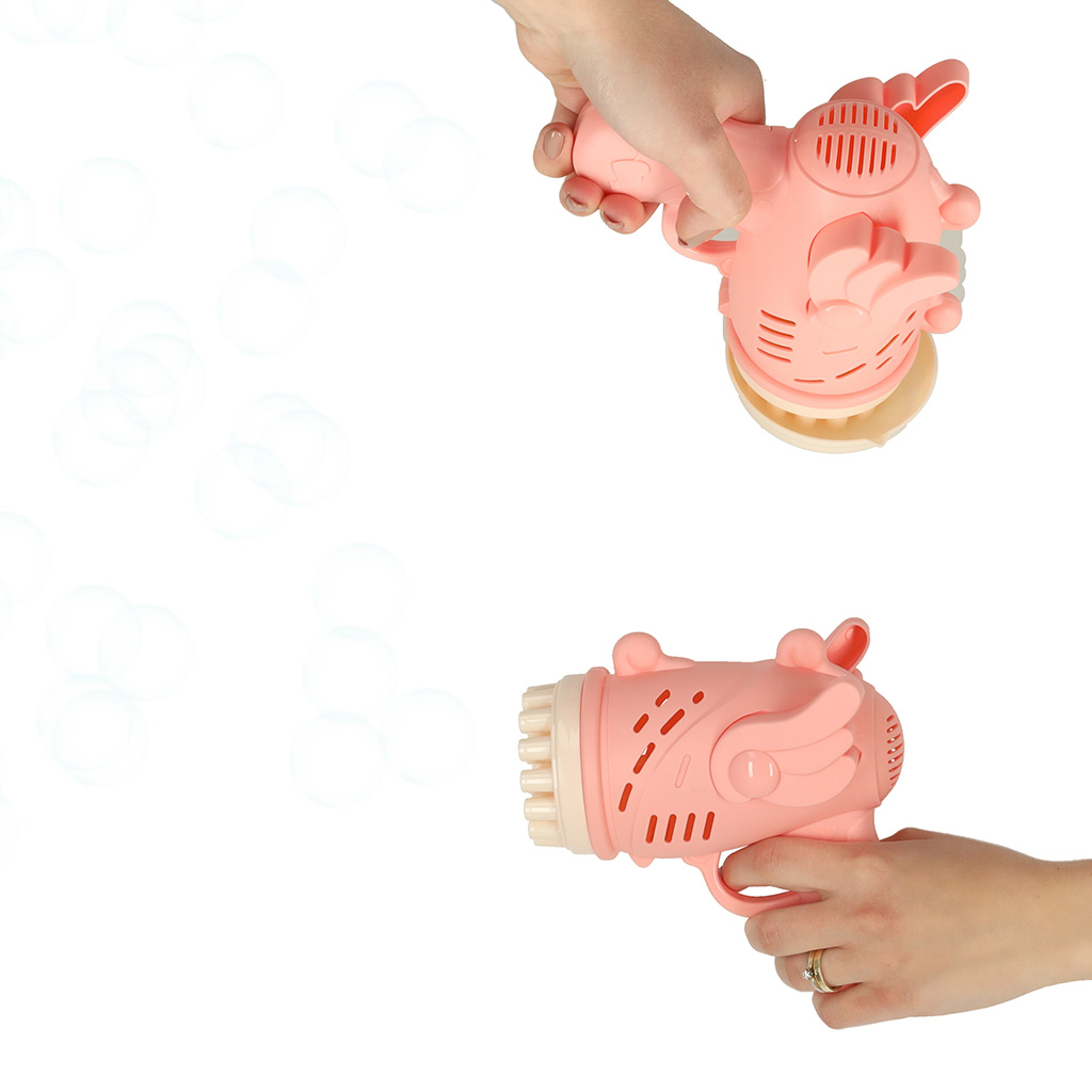 Püstoliga mullide vabastamine on triviaalne! Kõik, mida sa pead tegema, on kastma tünni ettevalmistatud mullivedelikku, seejärel suunata kogu masin soovitud kohale ja vajutada päästikule. Ärge imestage, kui palju mullid püstolist välja lendavad!