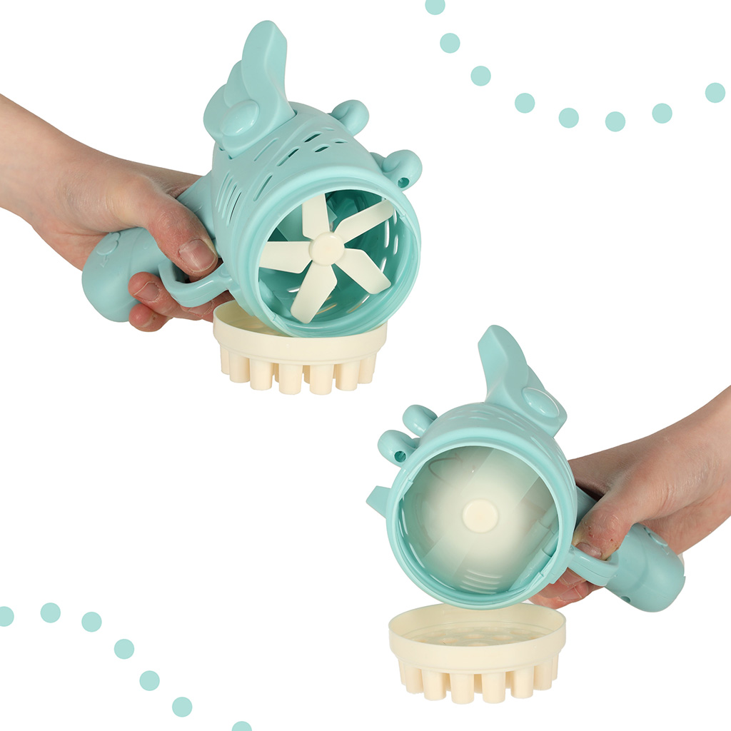 Püstoliga mullide vabastamine on triviaalne! Kõik, mida sa pead tegema, on kastma tünni ettevalmistatud mullivedelikku, seejärel suunata kogu masin soovitud kohale ja vajutada päästikule. Ärge imestage, kui palju mullid püstolist välja lendavad!