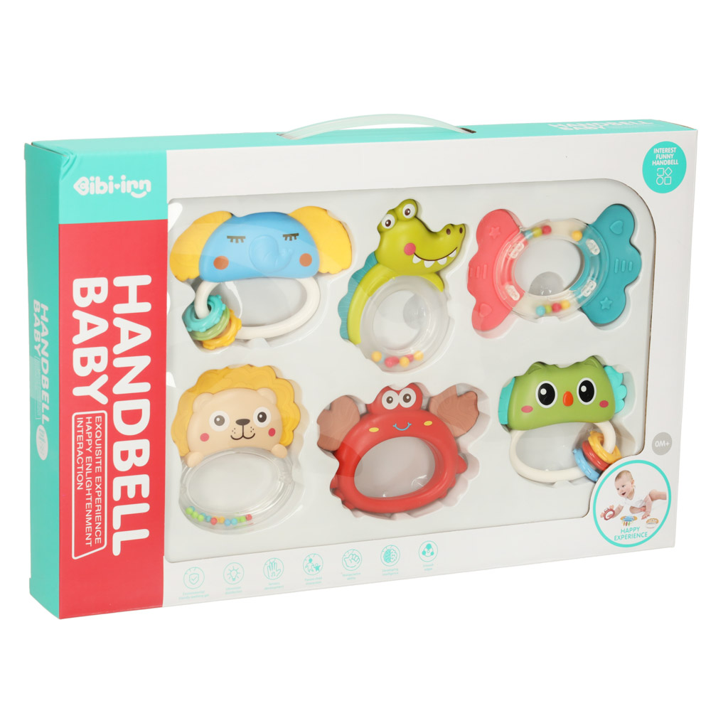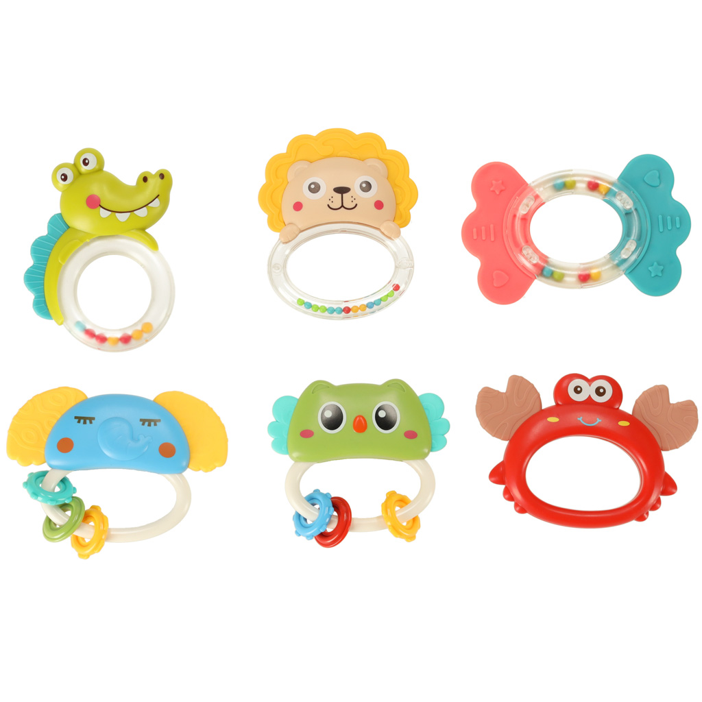 Kõik kuus mänguasja on erinevad – eriline värv, kuju või kujutab erinevat looma. Kuid igaühe eesmärk on hoida teie pisikesi meelelahutust juba esimestest elupäevadest alates!