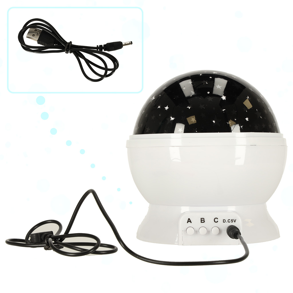 Projektoriga öölampi saab toidet kahel viisil – 4 AAA patarei või ükskõik millise USB-pordi kaudu, nt televiisori või sülearvuti juures.