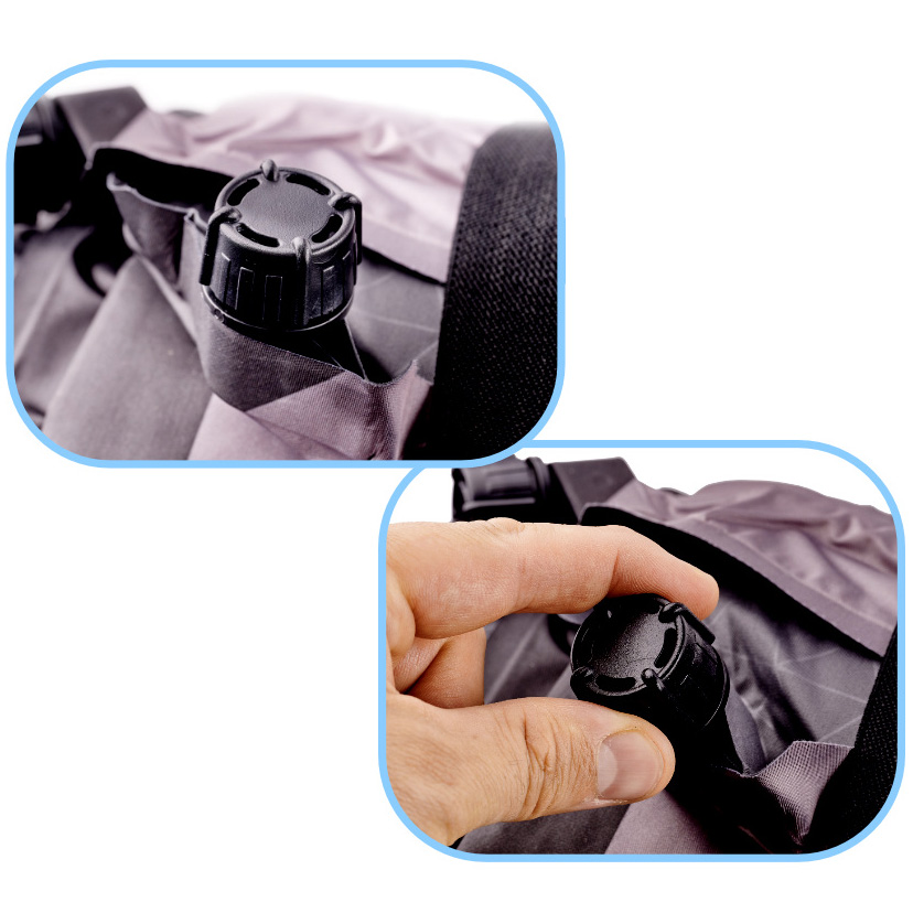 Madratsi ülaosas on paksem, täispuhutud osa, mis toimib padjana, see säästab ruumi – kui ei pea padjakesi kaasa võtma, tähendab see vähem pagasit!