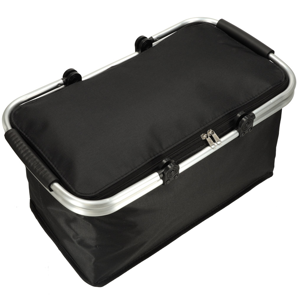 Paksust kangast valmistatud kahekordse tõmblukuga piknikukorv on vastupidavuse ja esteetilise välimuse garantii. Lisaks paistab see silma oma moodsa disaini jasoliidse töötluse poolest.