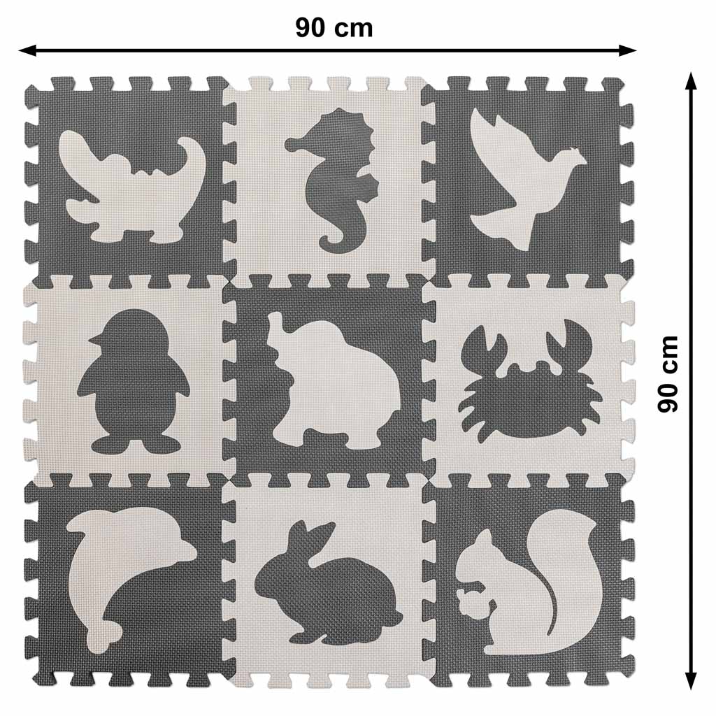 Vahtmaterjalist puzzle matt lastele 9 el. must-ecru