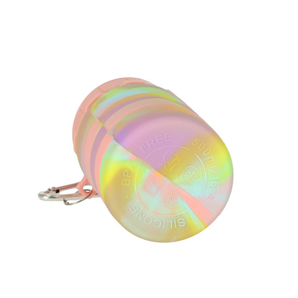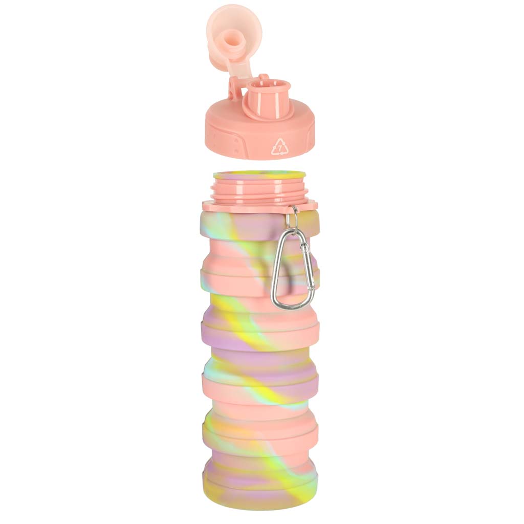 Veepudel Bidon silikoonist kokkuklapitav käepidemega sport 500ml vikerkaarevärvi